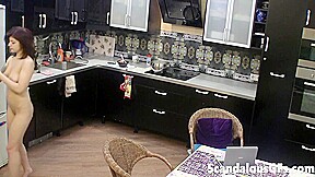 Hot naked teen on spycam cooking